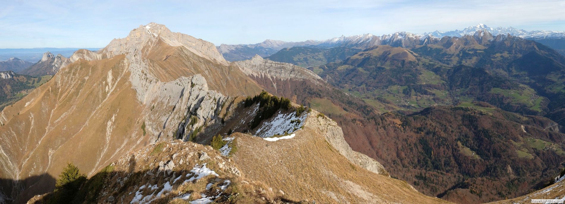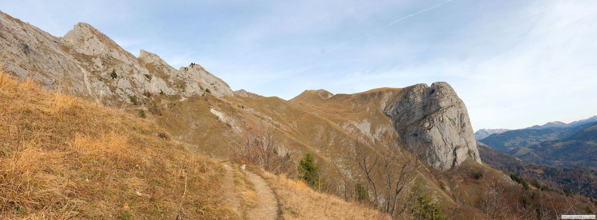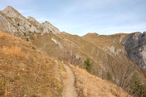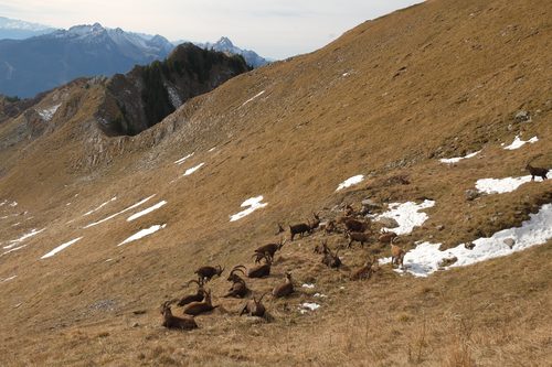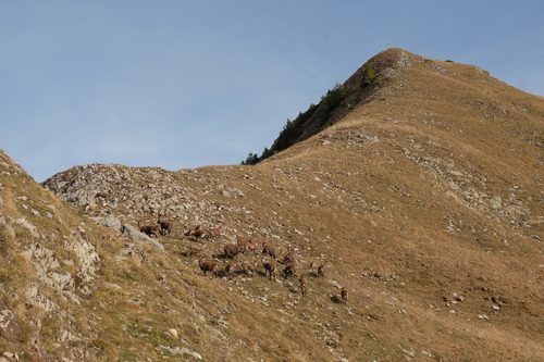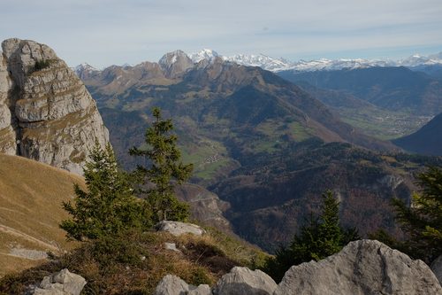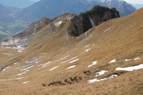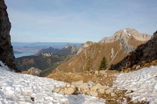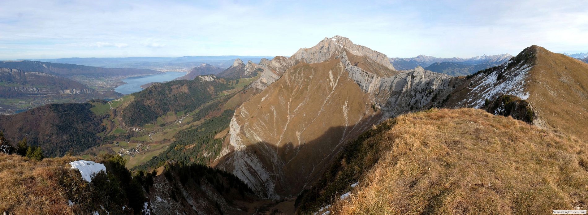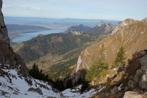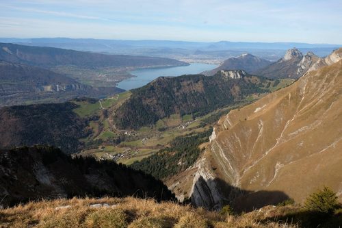 L'itinéraire longe la Pointe de Chauriande sur la droite par un magnifique sentier jusqu'aux chalets d'Arclosan en suivant un balisage vert. De là il est possible de monter sur la crête à droite en passant par la Croix d'Arclosan. Mon choix s'est porté pour la boucle dans l'autre sens en montant tout droit jusquau col du Pas de la Mine, puis à la Pointe de Banc Fleury et ensuite au Crêt des Mouches à travers la superbe combe d'Arclosan afin d'avoir la vue sur les Aravis et le Mont-Blanc au retour par un superbe sentier en bordure de crêtes. Présence d'une vingtaine de bouquetins au pied du col du Pas de la Mine que j'ai pu approcher à une dizaine de mètres sans les inquiêter. il y avait aussi une dizaine de chamois sous le Crêt des Mouches. Panoramas fantastiques sur le lac d'Annecy et la Tournette depuis les 3 spots que sont le col du Pas de la Mine, la Pointe de Banc Fleury et le Crêt des Mouches. La descente par les crêtes jusqu'au chalets d'Arclosan offre des vues superbes sur le Charvin, le Mont-blanc et la Tournette. Des chalets d'Arclosan la descente se fait par le même itinéraire que celui emprunté à la montée. Randonnée splendide sans danger si elle a lieu dans de bonnes conditions. |