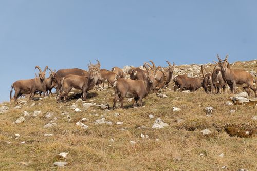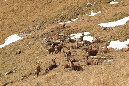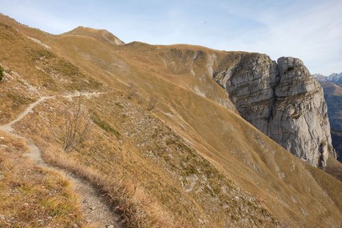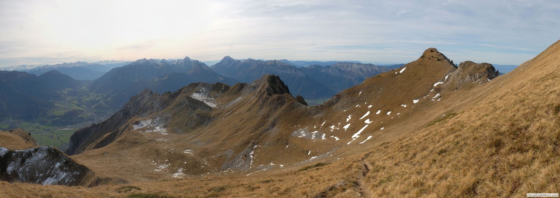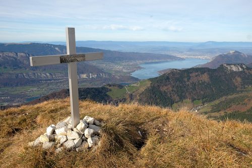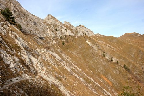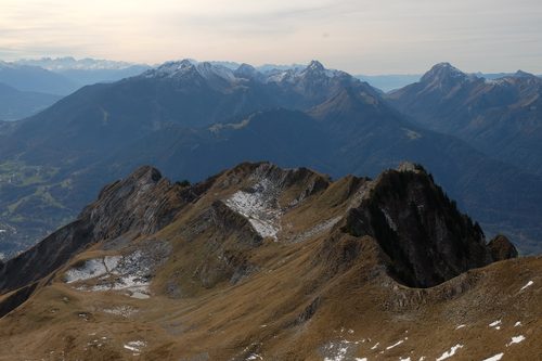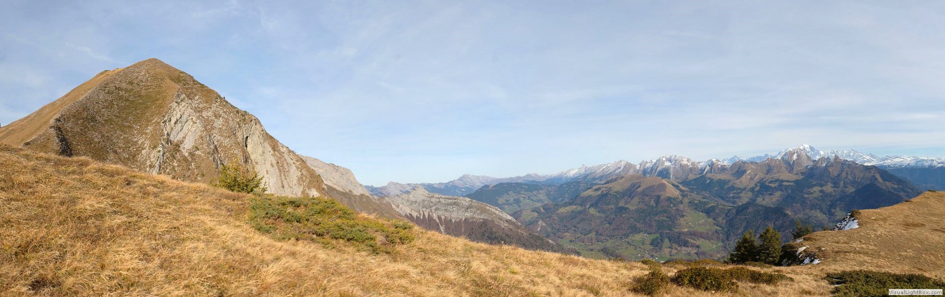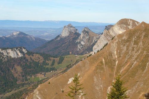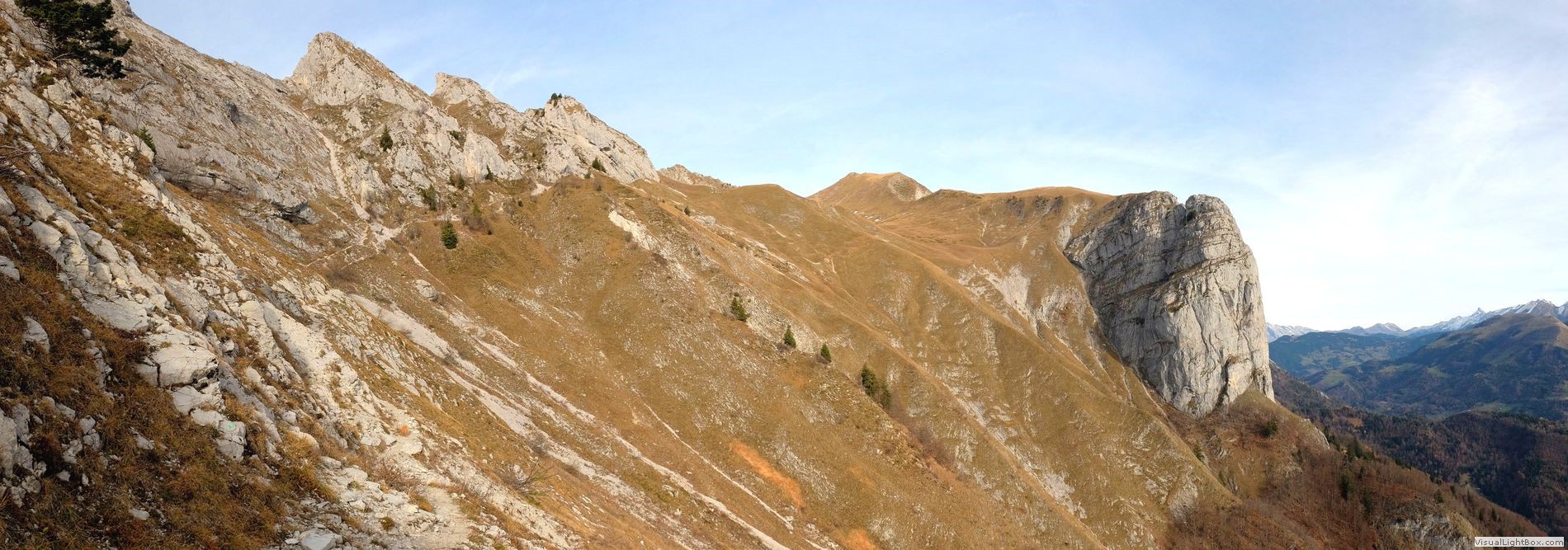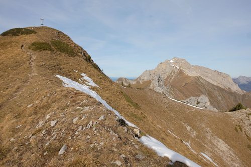 L'itinéraire longe la Pointe de Chauriande sur la droite par un magnifique sentier jusqu'aux chalets d'Arclosan en suivant un balisage vert. De là il est possible de monter sur la crête à droite en passant par la Croix d'Arclosan. Mon choix s'est porté pour la boucle dans l'autre sens en montant tout droit jusquau col du Pas de la Mine, puis à la Pointe de Banc Fleury et ensuite au Crêt des Mouches à travers la superbe combe d'Arclosan afin d'avoir la vue sur les Aravis et le Mont-Blanc au retour par un superbe sentier en bordure de crêtes. Présence d'une vingtaine de bouquetins au pied du col du Pas de la Mine que j'ai pu approcher à une dizaine de mètres sans les inquiêter. il y avait aussi une dizaine de chamois sous le Crêt des Mouches. Panoramas fantastiques sur le lac d'Annecy et la Tournette depuis les 3 spots que sont le col du Pas de la Mine, la Pointe de Banc Fleury et le Crêt des Mouches. La descente par les crêtes jusqu'au chalets d'Arclosan offre des vues superbes sur le Charvin, le Mont-blanc et la Tournette. Des chalets d'Arclosan la descente se fait par le même itinéraire que celui emprunté à la montée. Randonnée splendide sans danger si elle a lieu dans de bonnes conditions. |